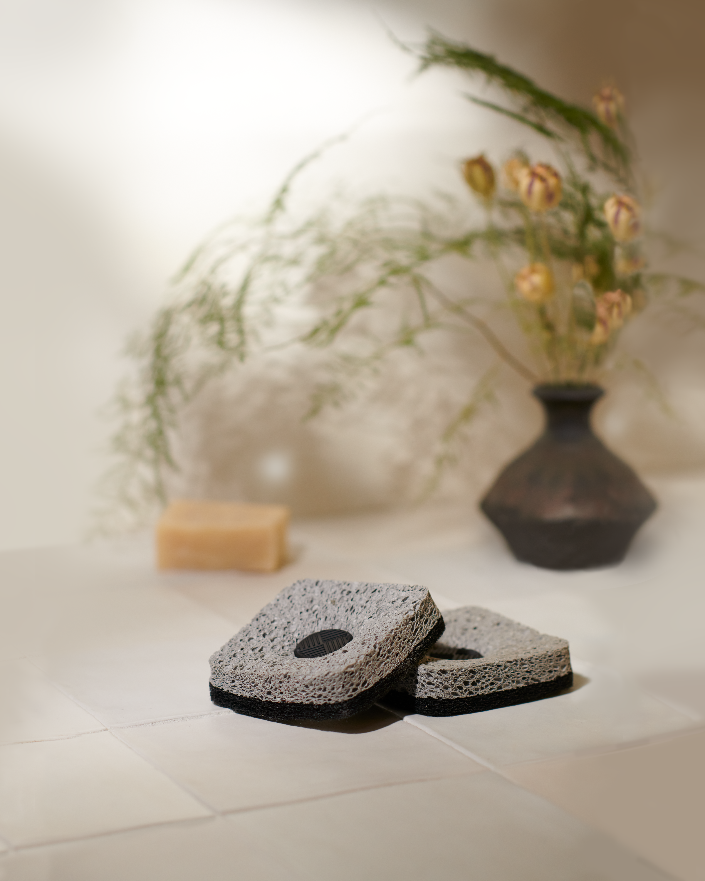 Clean stubborn messes with the central scrubber. Remount on magnetic sink mount when done for 360° drying. Antimicrobial solution keeps sponge odor free.